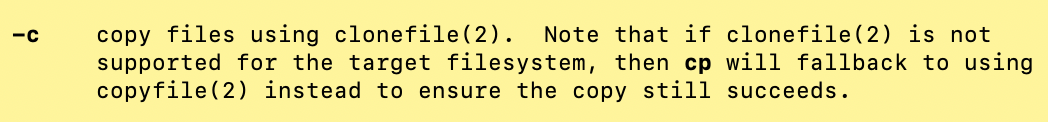 cp -c original.txt clone.txtand if you never write to either file, they’ll stay the same. If you write to either, they’ll split into their own files.